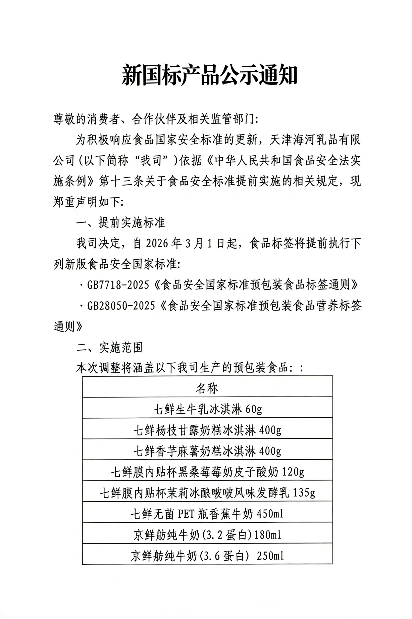 新国标产品公示通知